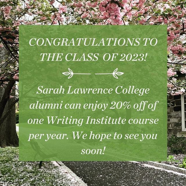 Not quite ready to leave the classroom? SLC alumni can enjoy 20% off of one Writing Institute course per year. Use code SLCALUM23 to redeem. We hope to see you in a writing class soon! @sarahlawrencealumni